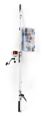 Spinning set for coastal fishing. Ideal for flounder fishing. Includes a carbon Brain Surf rod, a Brain Apex reel size 10,000, a high-quality rod case, and a plastic box with fishing accessories.