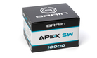 Brain Apex SW 10000 - specialized reel for surf fishing - catching heavy bottom gear in salt water. It is produced in one size - 10000, with a gear ratio of 4.4:1, which, together with the leading gear with a diameter of 40 mm, provides the coil with outstanding traction indicators. The spray drive is carried out with an endless screw, thus providing an ideal laying of a line or cord, and minimizing the probability of dropping loops, even with a facing wind. The unit of the forest stacker is cone, provides a guaranteed corporal hitting the roller. There are 9 stainless ball bearings of closed type. This makes its mechanism protected from the penetration of salt water inside. The handle of the coil is screwed into the main pair. Additionally, the handle is equipped with a fast folding system, which is especially important for those fishermen who carry the coils without removing them from the rod.
