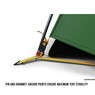 - Great stability due to the lightweight and firm laminate structure with steel pegs to stake the tent out.